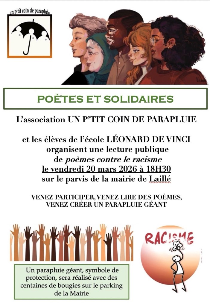 Poètes et solidaires Publié parptitcoinparapluie9 mars 2026Publié dansNon classé Partager : Partager sur X(ouvre dans une nouvelle fenêtre) X Partager sur Facebook(ouvre dans une nouvelle fenêtre) Facebook J’aime chargement… Similaire