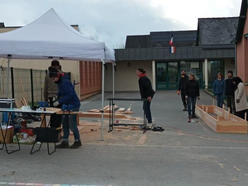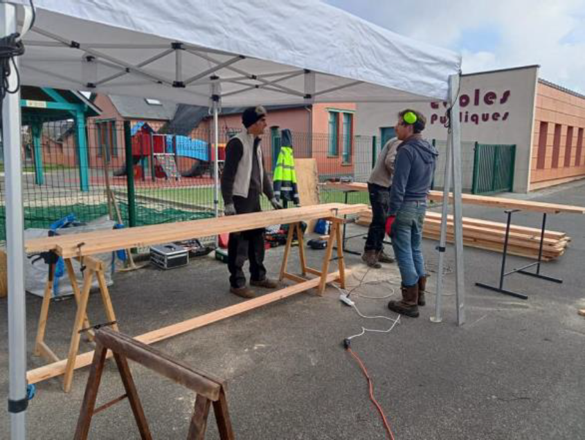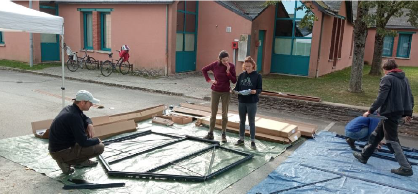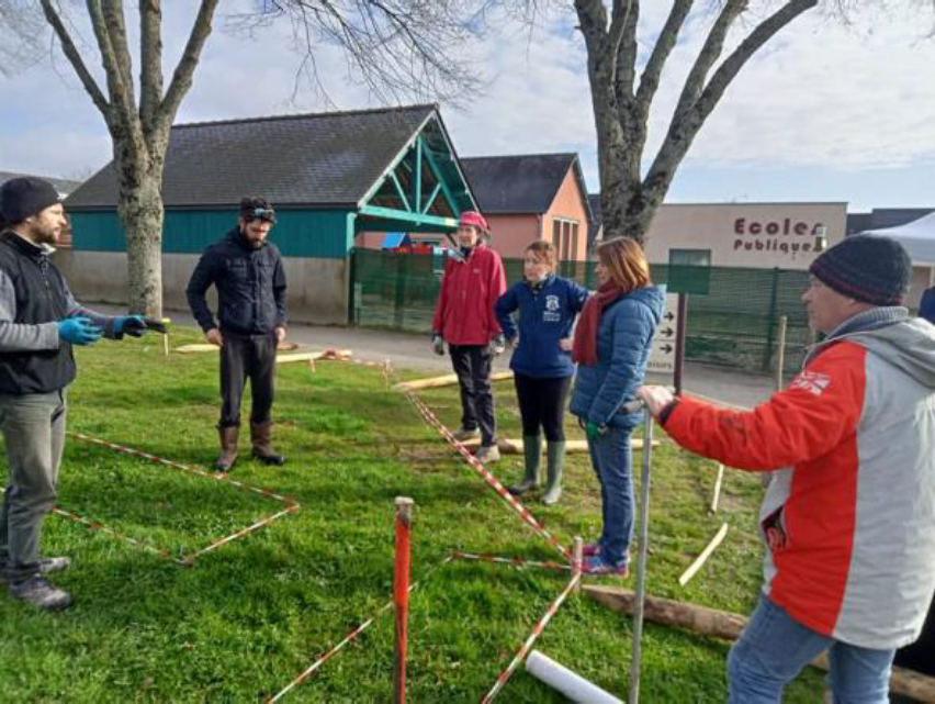 Les travaux de mise en oeuvre se sont déroulés en 17 journées de chantier participatif regroupant en moyenne 10 personnes et animées par un intervenant professionnel.