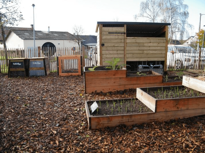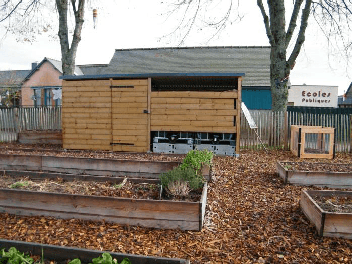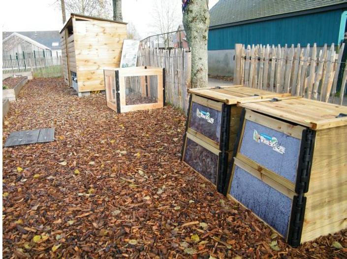 - 2 aires de compostage, soit 4 composteurs et 2 bacs à structurants
