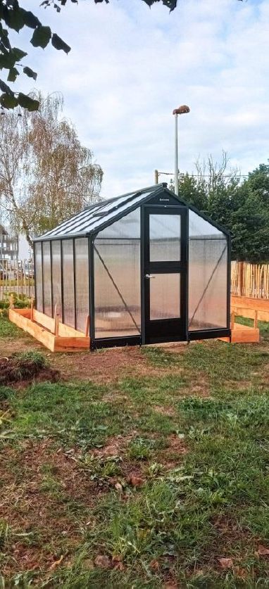 - 1 serre de 10m² avec 2 tables à rempotage et semis